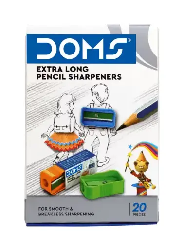 Ensure your pencils are always ready for action with the DOMS Box Of Extra Long Single Pencil Sharpeners. This set of 20 sharpeners in vibrant multicolors not only adds a touch of style to your stationery collection but also ensures that your pencils are sharpened with precision every time.
