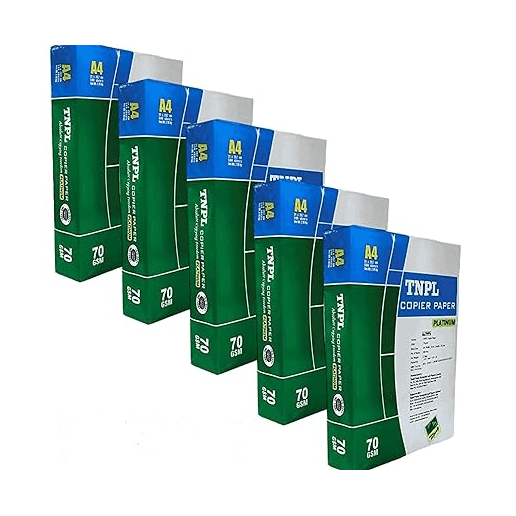 Introducing TNPL A4 Size Sheet 70 GSM Blank White Copier Printer Xerox Paper, offered in a convenient pack of 5 reams. Each ream contains high-quality blank white paper, suitable for printing, copying, and xeroxing. With its A4 size and 70 GSM weight, this paper ensures reliable performance and crisp prints for all your office needs. Elevate your printing experience with TNPL A4 Size Sheet 70 GSM Xerox Paper.