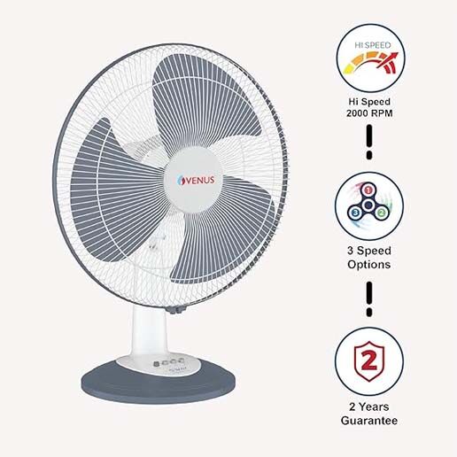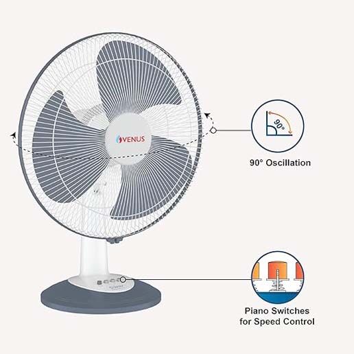 Venus Sway Hi Speed Table Fan-SHT 400 (Grey) | 3 Spped and 90° Oscillation | 2 Years Guarantee.